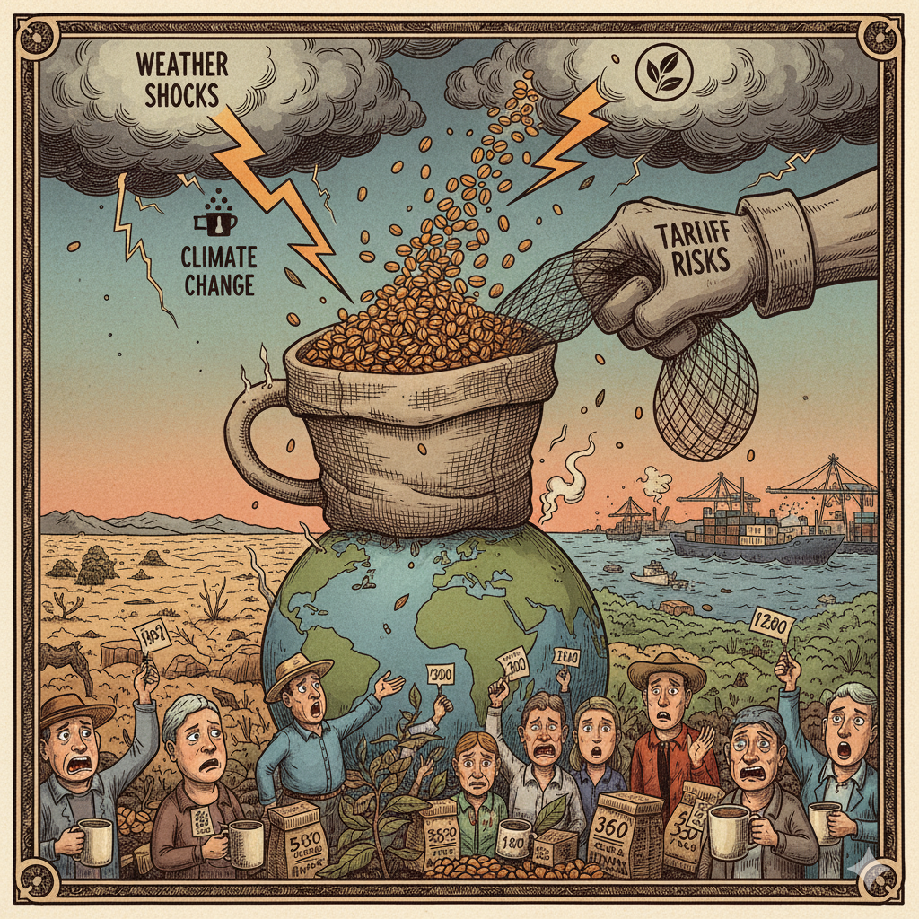 Coffee Prices Surge amid Weather Shocks and Tariff Risks