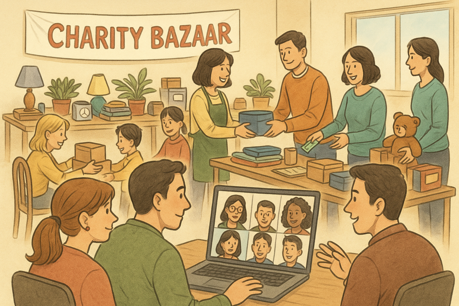 어느 날, 한 회원이 집에 안 쓰는 물건들을 우리끼리 서로 사고팔면 어떨까 하는 의견을 냈다.
