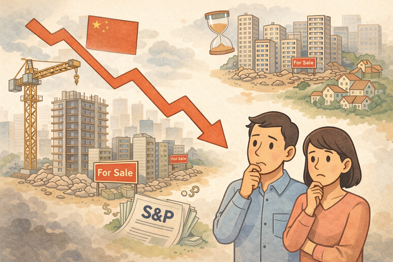 S&P는 판매량과 가격 모두 추가 하락하며 부동산 시장의 위축이 2026년까지 이어질 것으로 전망한다.