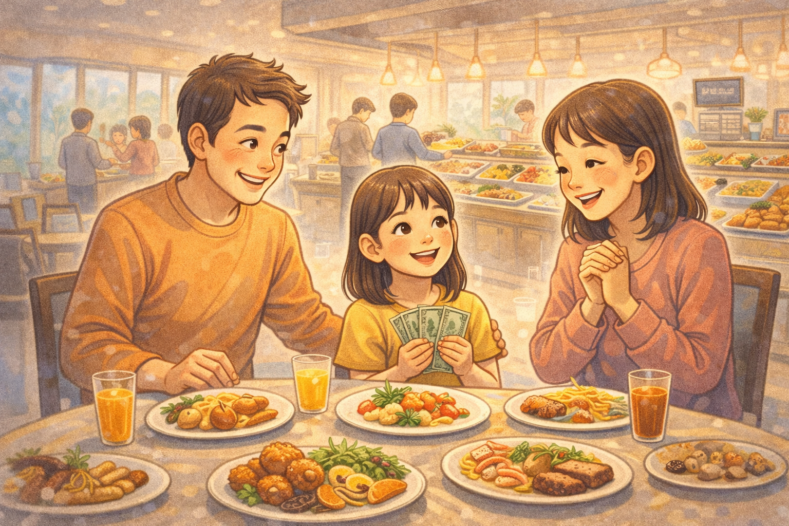 그런데 저희 딸이 그 주말에 자기가 돈을 낼 테니, 패밀리 레스토랑에 가서 뷔페를 먹자고 제안했습니다.