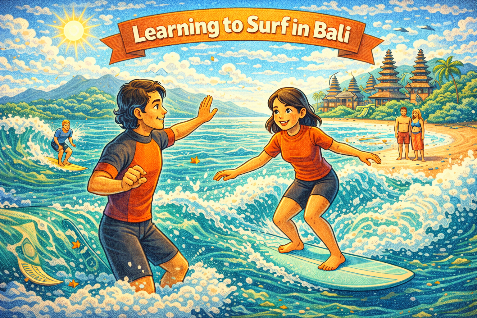 B: Yes, we went to Bali last year and he took lessons every day for a month.