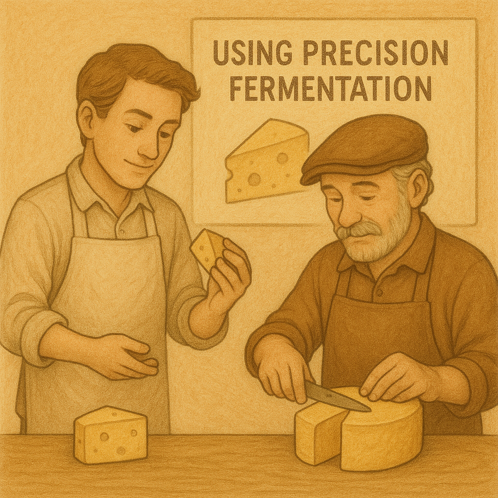 Better Dairy와 Those Vegan Cowboys를 포함한 몇몇 회사들이 정밀 발효를 사용해 유제품 단백질을 모방한 배양 치즈를 개발하고 있다.